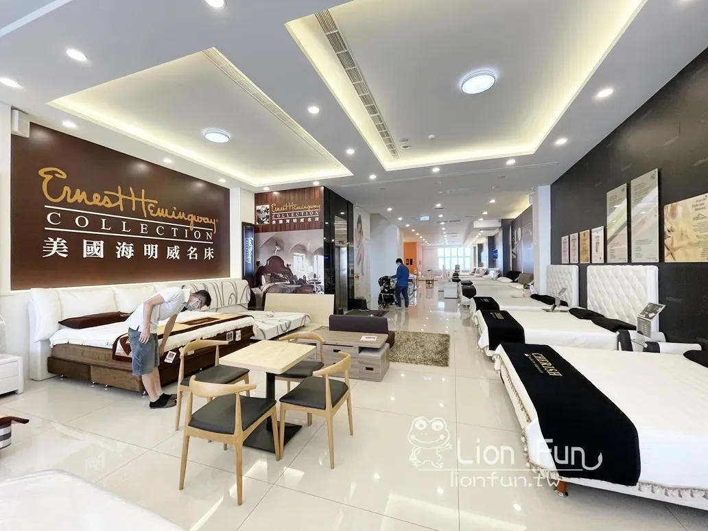床墊部分有美國席德瑞思名床、美國寶瑞思、美國黛比床墊、德國戴樂名床、美國海明威名床、美國席夢思、德國鍾愛一生等品牌
